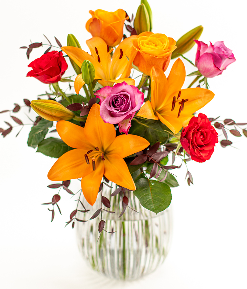 Autumn Burst brings together the fiery tones of orange lilies with the romantic mix of roses, all accented with fragrant eucalyptus. Delivered in bud to preserve freshness, the flowers gradually open to reveal their full beauty at home. With our convenient tracked delivery, you can follow your bouquet’s journey every step of the way. A showstopping bouquet at a surprisingly wallet-friendly price, proof that beauty doesn’t have to cost a fortune.