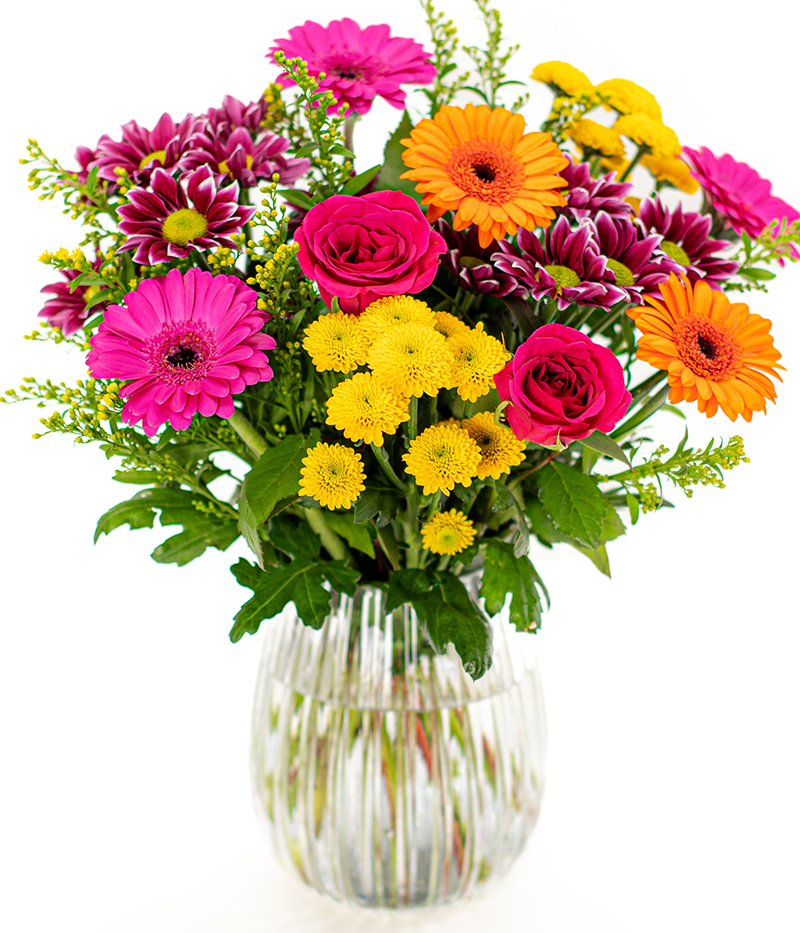 Sweet Autumn contains a mix of pink and orange germini, spray chrysanthemums complemented by a cerise rose that takes centre stage in this bouquet. Sent in a protective Eflorist box, this bouquet arrives in bud to ensure lasting freshness for the lucky recipient. With just a splash of water and our included flower food, the blooms will gracefully open up within two days. And with tracked delivery, you can relax knowing exactly when your surprise is delivered. These flowers are a great inexpensive way to brighten up every occasion.