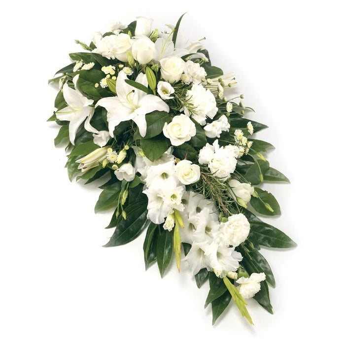 Crafted with delicate roses, lilies, gladioli, and other seasonal flowers, this single-ended spray provides a respectful and elegant tribute. Our expert florists complete the arrangement with additional foliage for a lush, full look.